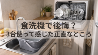 食洗機は便利と言われますが、「買って後悔した」という声も見かけます。わが家ではこれまでに3台の食洗機を使ってきました。実際に使ってみると、便利だと感じる部分もあれば、「思っていたのと違う」と感じる部分もあります。この記事では、食洗機を使って...